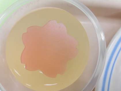 昨年は桜のゼリーがうまく固まらなかったので、今回はきれいに型がぬけるように作り方を変えました。今回はしっかり固まり、きれいに桜の形に抜けたのですが、寒天が多すぎたようで、寒天の味にゼリーの味が負けてしまい、食感もかなり固いものになりました。