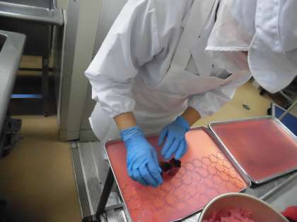 ゼリーの桜は八雲小学校の校章になっています。桜色のゼリーを型抜きし、はちみつとレモンで作ったゼリーの上に載せました。