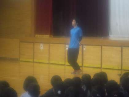 今日は、なわとびパフォーマーの方が来校しました。