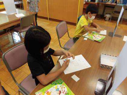 「わ〜、めちゃくちゃ緊張する!」と、みんな息を詰めるようにして取り組んだ結果、1組も2組も失敗した人はいませんでした。自分の読書の足跡を残す貸し出しカードです。1年間、大切に使ってほしいと思います。