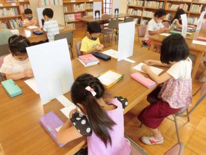 とても集中している2年生のこの姿は、個人貸し出しカード作りの様子です。
