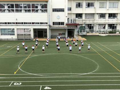 準備運動も楽しくみんなで頑張っています!