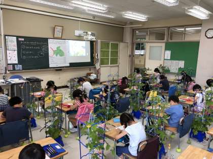 葉の大きさや色、形について絵に表し、気付いたことを文にまとめました。これからも大きく育ってほしいですね!