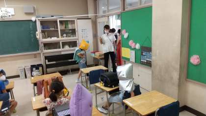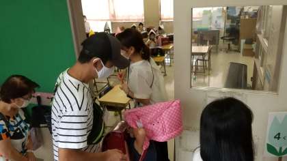 今日は、引き渡し避難訓練があり、1年生は実際に保護者の方の引き取り訓練を行いました。