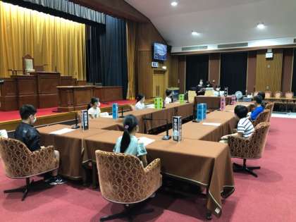 まずは、参議院特別体験プログラムで、模擬国会の体験です。