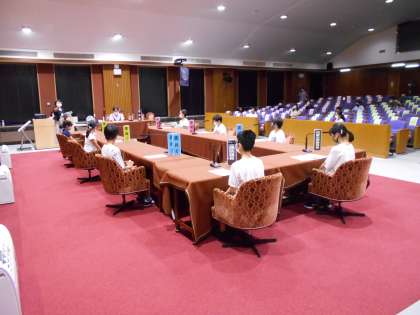 最初に参議院特別体験プログラムを行いました。クラスの代表が議長や委員会メンバーとなり実際の法案ができるまでを実際に体験しました。見ている側も法案に賛成か反対かの投票で参加することができました。授業で習ったことなので知識としては分かっていましたが実際の流を見ることで国会で何が行われているかがより、鮮明になったと思います。