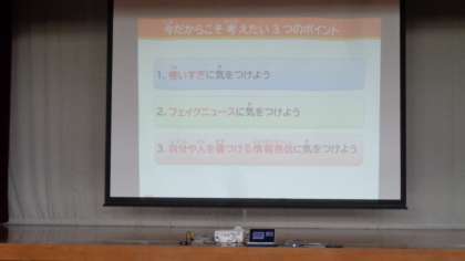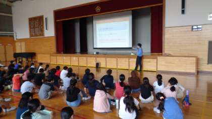セーフティ教室を行いました。内容は1.使いすぎについて2.フェイクニュースについて3.自分や人を傷つける情報発信についての3点でした。どの内容も子どもたちの生活に深くかかわるもので特に1の内容の依存症の話では、お酒や薬物だけでなくインターネットでもやりすぎると身体や生活に大きく影響がでること、3の内容の心無い文章が簡単に人の命を奪ってしまうことについては子どもたちも衝撃を受け、真剣に話を聞いていました。おうちでも今日聞いた内容についてぜひ、話題にしてみてください。