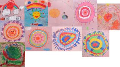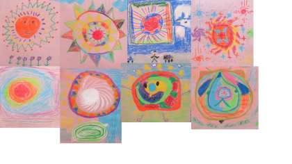 運動会に向けて3年2組さんもにこにこ太陽の絵を描きました。