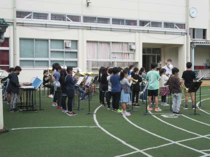 金管バンドの人たちが校歌の演奏をしてくれました。