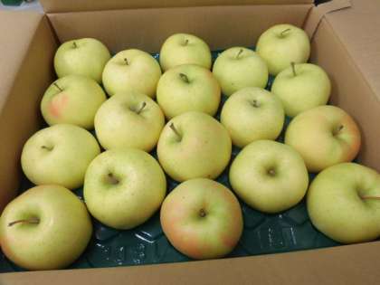 果物は当初梨の予定でしたが、食材の都合のより、りんごになりました。黄緑色の皮の「とき」という品種です。