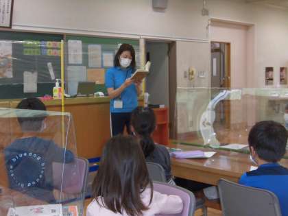 みんな大好きな図書の時間です。今回は、アーノルドローベルさんの「フクロウシリーズ」を紹介していただきました。