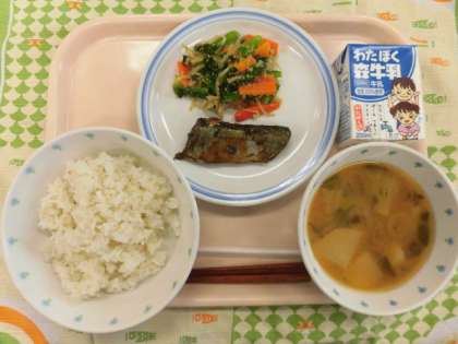 今日は季節の献立です。落語「目黒のさんま」で目黒と縁のある「さんま」は秋が旬の魚ということで、この時期になるとさんまを使った給食を出しています。