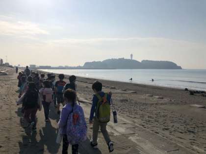 今日は、1.2年生の遠足です。バスは順調に進み、9時20分に江ノ島水族館に到着です。