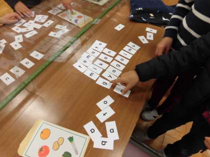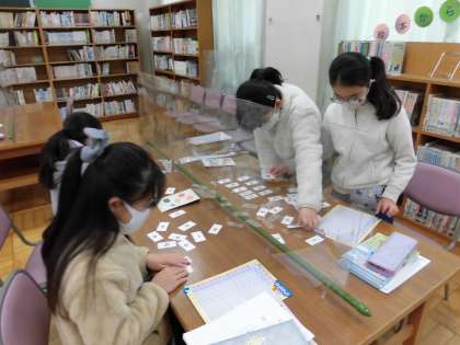 3年生が国語でローマ字の学習を終えたので、図書の時間に、「野菜・果物の名前組み立てゲーム」に挑戦しました。