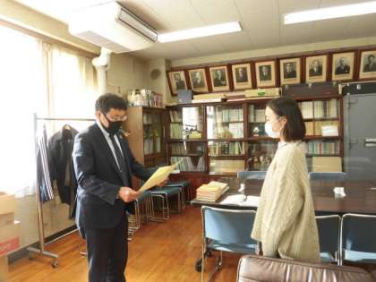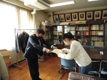 目黒区の読書感想文コンクールで入賞した皆さんの表彰がありました。放送朝会で紹介され、表彰式は中休みに校長室で行いました。