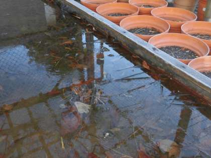 今朝は、学校のビオトープにも氷が張っていました。寒い朝です。