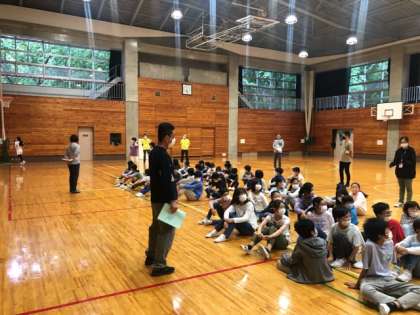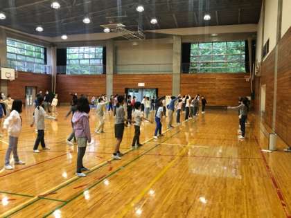 時間通りに、集合し、体育館で、朝会とラジオ体操です。