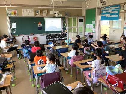 今日は、行事があるため、オンラインで全校朝会が行われました。いじめについてのお話がありました。