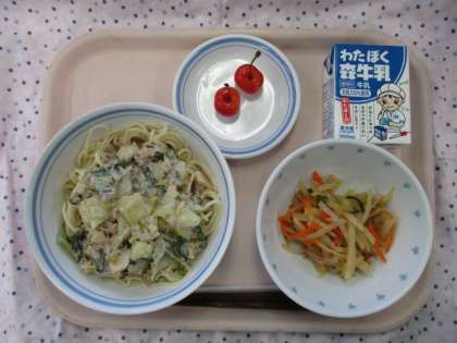 豆乳担々麺は鶏がらスープと豆乳を使って担々麺の汁を作っています。ごまやザーサイ、テンメンジャン、豆板醤、干しえびなどで風味をつけました。普段の麺の汁とは違うので、苦手に感じる児童もいたようで、クラスによっては残りが目立つクラスもありました。空っぽのクラスもたくさんあり、児童によって好みが分かれているようでした。