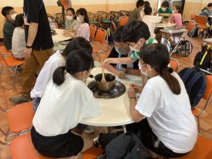 興津自然宿泊体験教室4 公開日 2022/07/11 更新日 2022/07/11 今日のできごと マザー牧場に入園し、まずはジャム作り体験です。ブル-ベリーのいい香りがしています。ジャムは、賞味期限が3日だそうです。帰ったらすぐにお召し上がり下さい。 いいね(0)