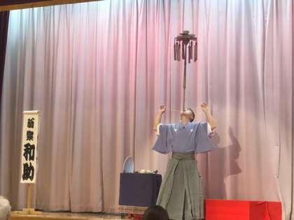 昨日、本校の卒業生であり、現在、落語会の真打として大活躍の春風亭柳枝師匠によるらくご笑学校が本校で開催されました。当日は、翁家和助さん(太神楽)金山はるさん(三味線)金原亭駒助さんも参加くださり、会場である体育館は、笑いと笑顔があふれる素敵なひとときとなりました。