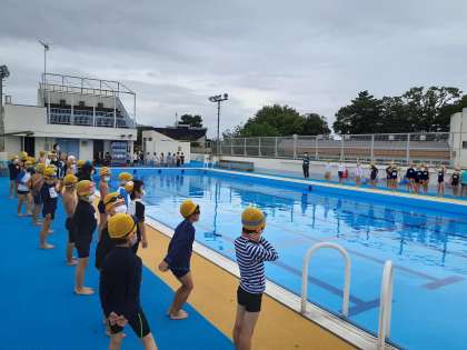 はじめての水泳学習も昨日無事終了しました。1年生は、水に親しむことを中心に楽しい時間を送ることができました。