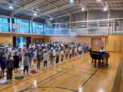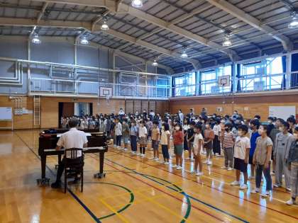 今日は、2.3.5年生のミュージックタイムでした。体育館にビリーブの素敵な歌声が響きました。