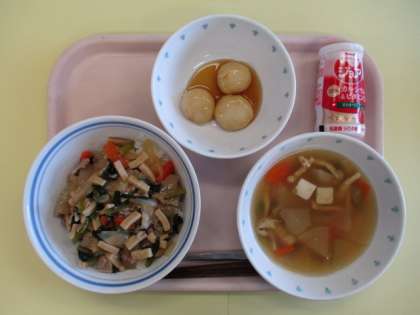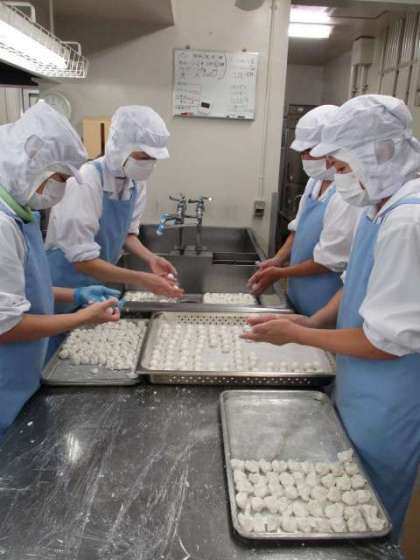 給食室を覗いている子どもたちに「今日は月見団子だよ」と伝えると「やったー!」と喜んでいました。多めにできたので、おまけも各クラスありましたが、どのクラスもよく食べていました。