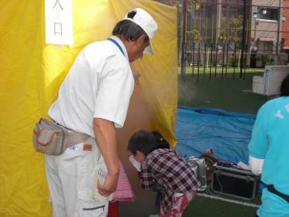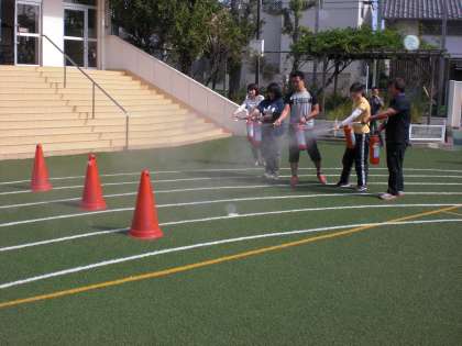 今月は、防災課の方をお招きして、体験型の避難訓練を行いました。消化器訓練・起震車体験・煙体験を行いました。火事や地震の際に、自分の身を守るために大切なことを学びました。
