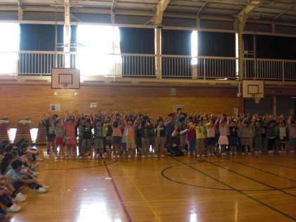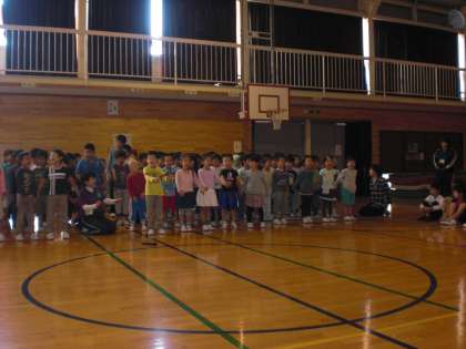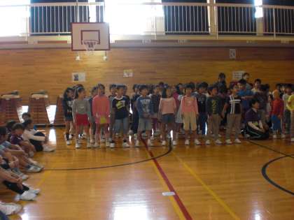 1,2年生が全校生の前で「手のひらを太陽に」を発表しました。元気いっぱいの歌声が体育館に響きました。2年生が考えた振り付けもあり、とてもかわいらしかったです。