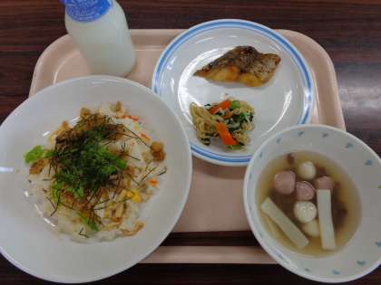今日の給食:岩国ちらしずし いとこ煮 魚のピリ辛焼き