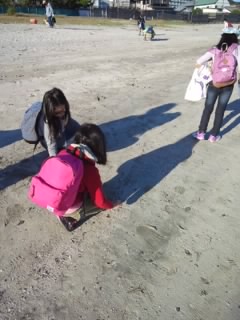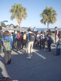 興津海岸へ到着。貝殻拾いをしました。