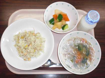 11月5日の給食 公開日 2015/11/05 更新日 2015/11/05 八雲ランチ 今日の給食:豆もやしのチャーハン 春雨スープ 中華やさい 牛乳 産地 にんにく:青森県 しょうが:高知県 にんじん:北海道 玉ねぎ:北海道 鶏肉:鳥取県 いいね(0)