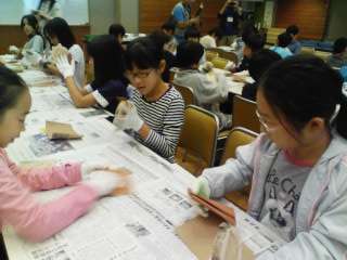 コースターづくりに入りました。皆ヤスリでゴシゴシしています。