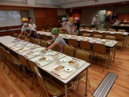 食事係は、一足先に食堂に来て、準備を進めます。