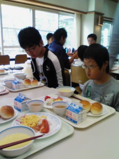 三日目の朝食、リラックスして食べています。