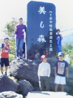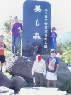 美しの森の碑で記念撮影しました。