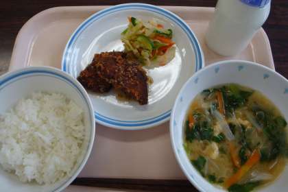 6月11日の給食 公開日 2013/06/11 更新日 2013/06/11 八雲ランチ 今日の給食:ごはん みそ汁 魚の唐揚げ ゆで野菜レモン醤油和え 牛乳 産地 しょうが:高知県 にんじん:千葉県 大根:北海道 小松菜:東京都 長ねぎ:茨城県 キャベツ:愛知県 きゅうり:群馬県 セロリー:長野県 レモン:愛媛県 かつお:静岡県水揚げ いいね(0)