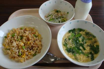 6月18日の給食 公開日 2013/06/18 更新日 2013/06/18 八雲ランチ 今日の給食:枝豆チャーハン ニラ玉スープ 中華風サラダ 牛乳 産地 玉ねぎ:佐賀県 枝豆:埼玉県 にんじん:千葉県 長ねぎ:千葉県 小松菜:埼玉県 にら:山形県 きゅうり:岩手県 もやし:栃木県 豚肉:鹿児島県 いいね(0)