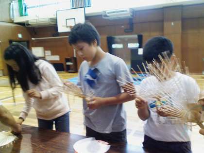 6年 興津自然宿泊体験教室 129 公開日 2013/06/06 更新日 2013/06/06 6年 「うちわの骨にしっかり糊付けします。」 まずはうちわの骨に糊付けし、各自が選んだ絵柄を張り付けていきます。 いいね(0)