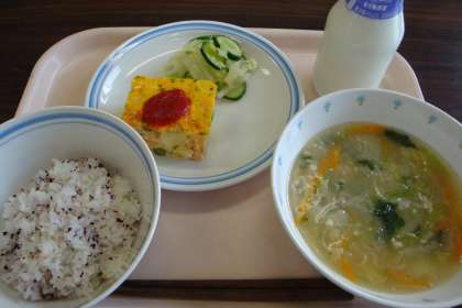 7月2日の給食 公開日 2013/07/02 更新日 2013/07/02 八雲ランチ 今日の給食:ゆかりごはん 冬瓜とひき肉のスープ 大根サラダ 牛乳 産地 にんじん:千葉県 白菜:長野県 小松菜:埼玉県 長ねぎ:千葉県 きゅうり:岩手県 冬瓜:静岡県 大根:青森県 キャベツ:秋田県 レモン:愛媛県 鶏肉:鹿児島県 いいね(0)