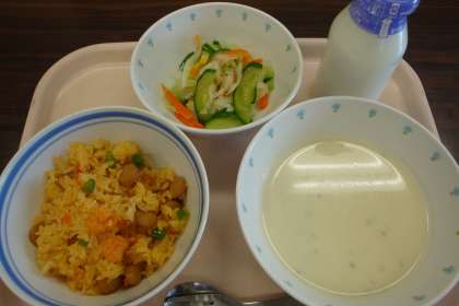 8月28日の給食 公開日 2013/08/29 更新日 2013/08/29 八雲ランチ 今日の給食:ジャンバラヤ ヴィシソワーズ ゆで野菜ドレッシングソース 牛乳 産地 にんにく:香川県 玉ねぎ:北海道 にんじん:北海道 ピーマン :茨城県 じゃがいも:北海道 長ねぎ:青森県 パセリ:長野県 きゅうり:秋田県 キャベツ:群馬県 鶏肉:徳島県 えび:タイ いいね(0)