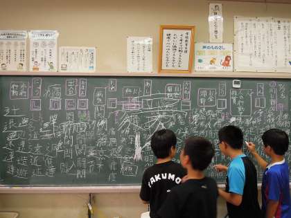 黒板いっぱいに漢字!