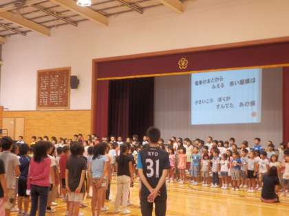 ミュージックタイム 公開日 2013/07/17 更新日 2013/07/17 今日のできごと 今日のミュージックタイムha, 1・2年生と3くみの歌を聞きました。 さわやかな歌声が、体育館中に響きました。 いいね(0)
