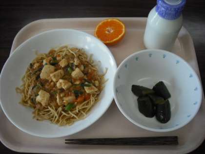1月22日の給食 公開日 2014/01/22 更新日 2014/01/22 八雲ランチ 今日の給食:麻婆やきそば 中華風きゅうり みかん 牛乳 産地 しょうが:高知県 にんにく:青森県 にんじん:千葉県 玉ねぎ:北海道 長ねぎ:埼玉県 ニラ:高知県 きゅうり:宮崎県 みかん:静岡県 豚肉:鹿児島県 いいね(0)