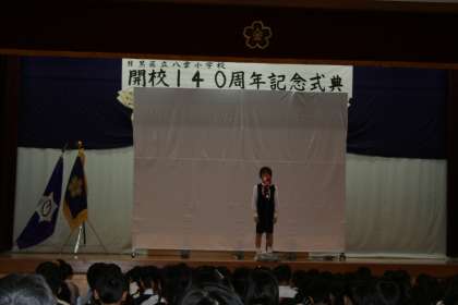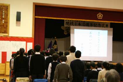 記念式典に引き続き、児童の手によるお祝いの会を行いました。