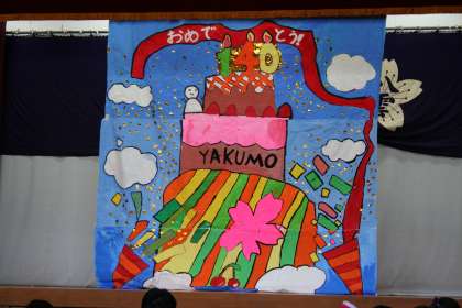 地域の方によるサプライズの出し物があり、最後にハッピーバースデイの歌を歌いました。大きなバースデイケーキが登場しました。