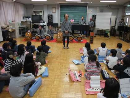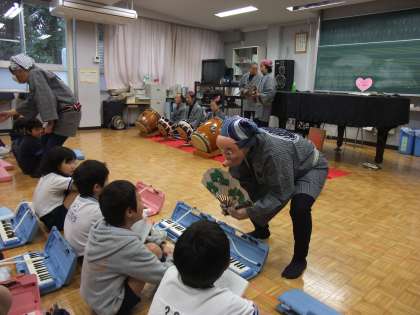 社会科「昔から続いている目黒囃子」 3年 公開日 2014/02/14 更新日 2014/02/14 3年 ゲストティ—チャー(保存会のみなさま)にお越しいただき、お話を聞きました。 また、お話を聞いた後、一緒に演奏をしました。 ひょっとこやおかめ、ししまいに驚いていました。 昔から伝わっていることの話を聞いたり、昔から使い続けられている太鼓などを見たりして、目黒囃子が大切にされていることを実感しました。 いいね(0)