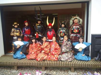 甲冑の体験です。江戸時代中期ころから流行った打掛も試着しました。