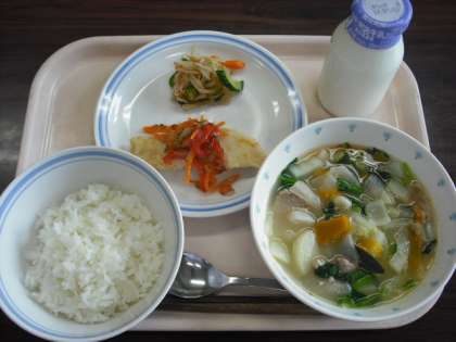 今日の給食:ごはん 野菜スープ 魚のエスカベージュ